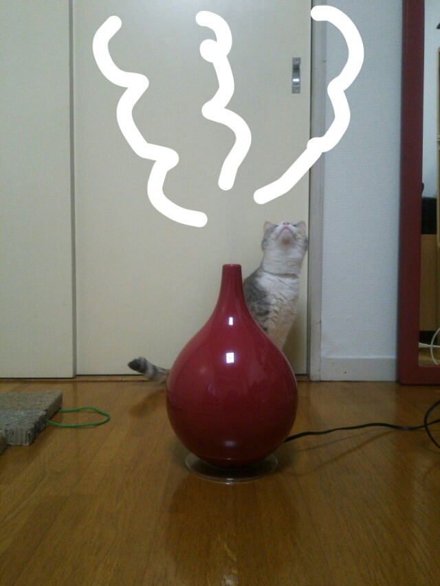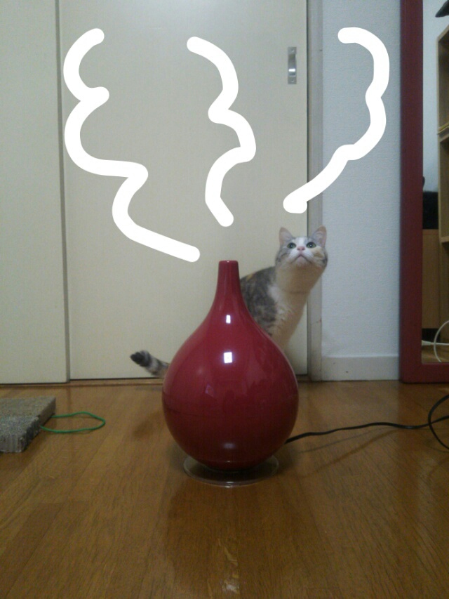 ちなみに、熱くならないタイプの加湿器なので、しまみけが触っても安心です。