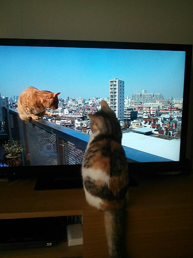 「向こうに誰か居るの!?」という様子でテレビの裏に回ってみたり。