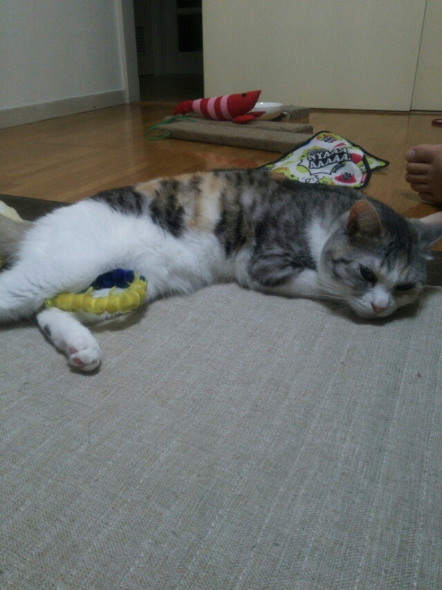 2013年のねこの日に1歳半のしまみけにゃんこがやってきました。 ちょっとどんくさい縞三毛猫との生活です。