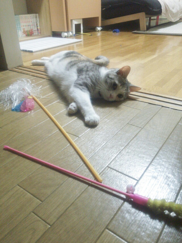 今宵もお風呂上がりにおもちゃを準備しているしまみけです。