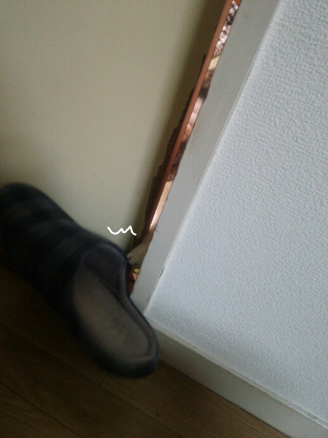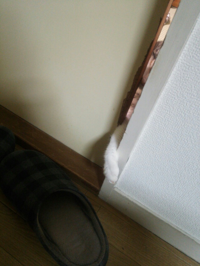 ドアの隙間から伸びる白いお手て。