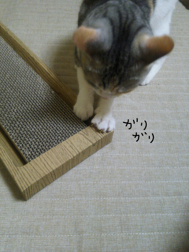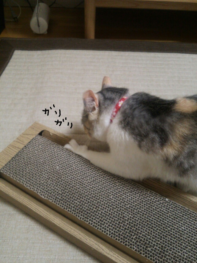 しまみけは麻の爪研ぎを愛用してますが、試しに段ボールの爪研ぎも置いてみました。
