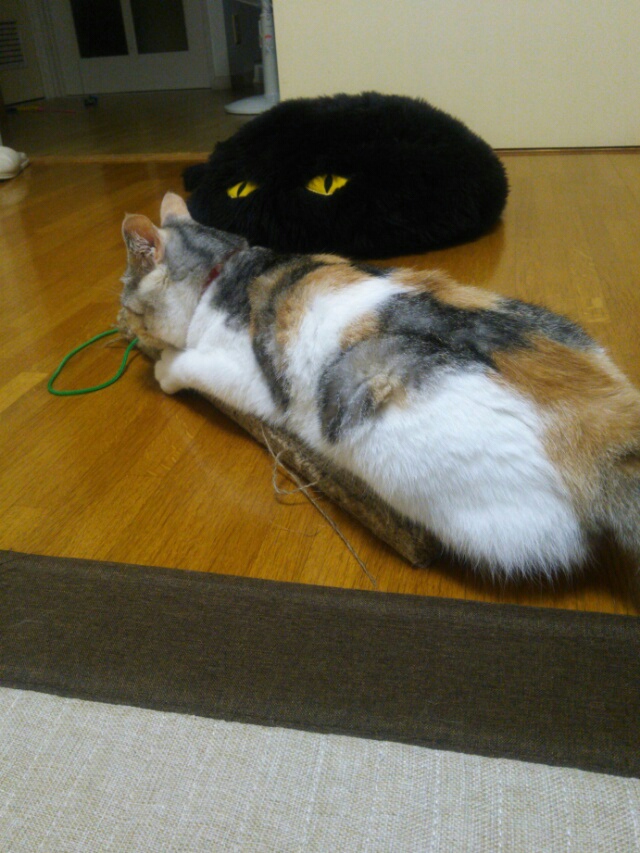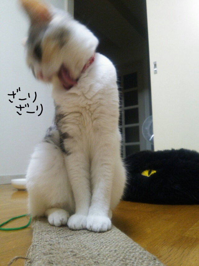 毛繕いも爪研ぎの上です。