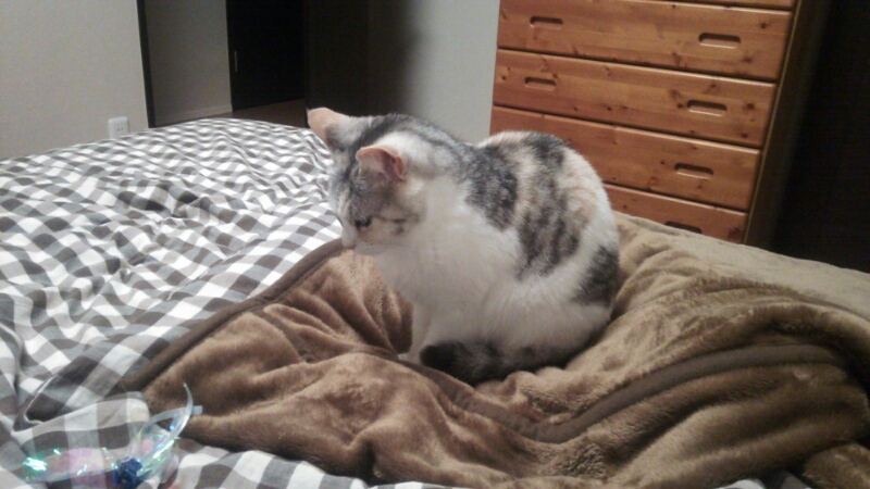 主人の布団を揉むしまみけ。