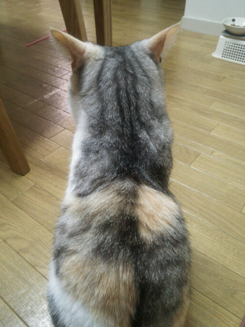 既に30分程換気した後だったので天袋を閉めると、後ろに片手を上げたままぼーぜんとフリーズするしまみけが。