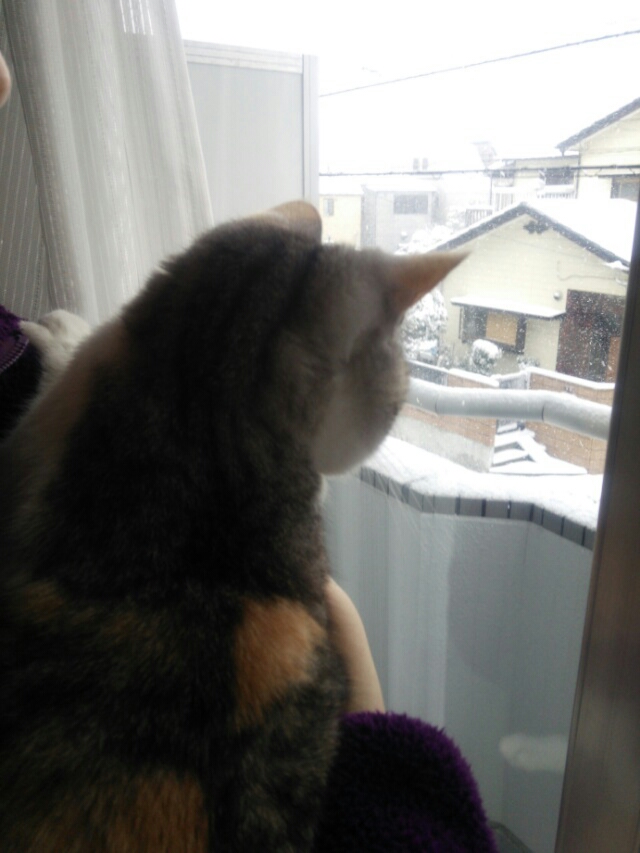 雪を拾ってきてしまみけに見せたら「冷たい!」と手をプルプルされました。
