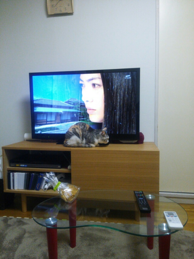 真剣な眼差しでトリックドラマスペシャル3を見るしまみけ。