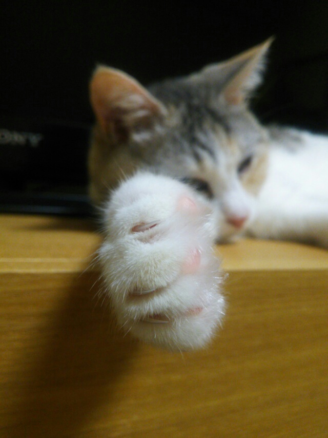 自分でしっかりお手入れしてるから肉球に爪が食い込む心配は今のところ無いけど、将来的に心配です。