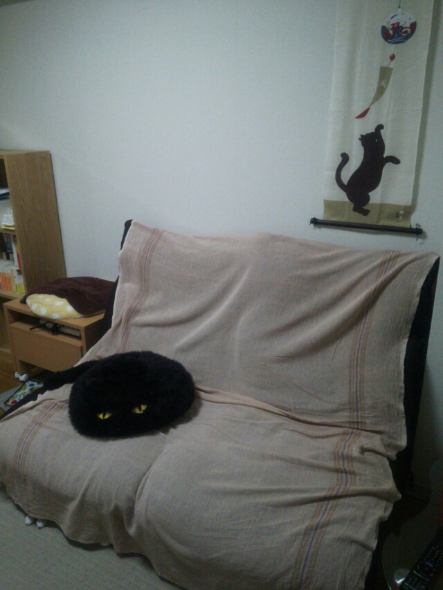 今はソファーの奥に連れ込んで、しっぽをかみかみしています。