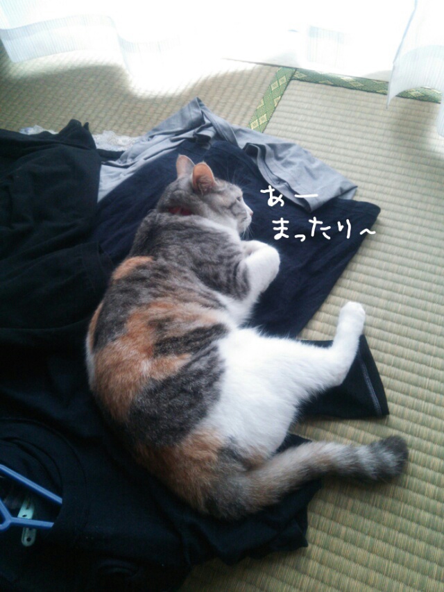 畳むのを諦めて他の部屋に移動したら、しばらくしてからしまみけもついてきました。