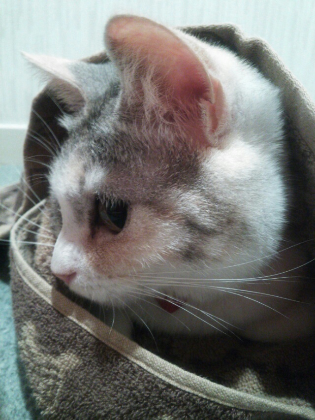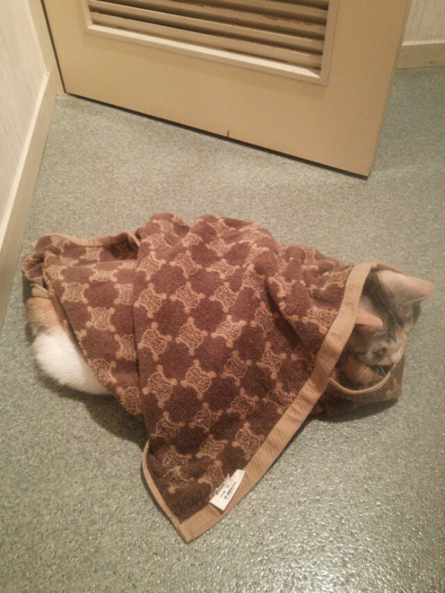 お風呂上がりの邪魔をしたから、バスタオル巻き巻きの刑。