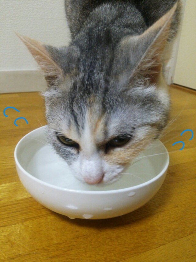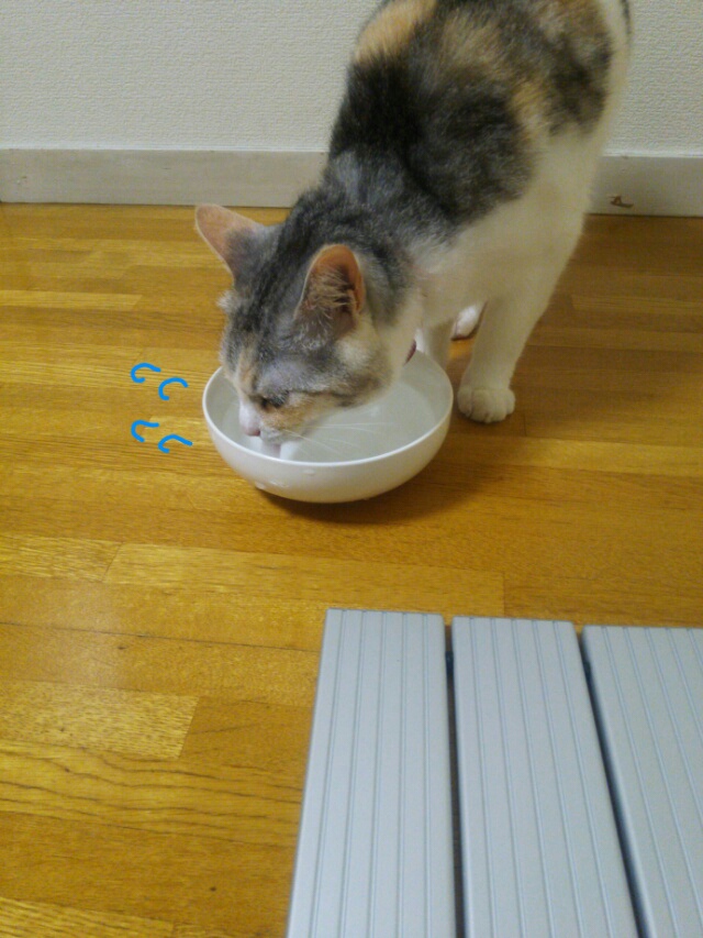 普通の場所にしか水を置いていない場合は、ちゃんとその場所で水を飲みます。