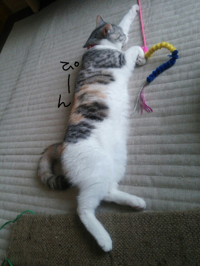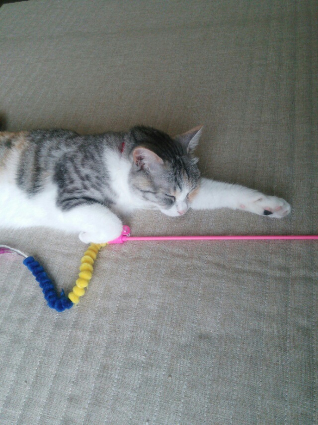 さて、昨夜は寝る前にたくさん遊ぶことで、真夜中に猫が騒ぎ出すのを食い止めようとしました。