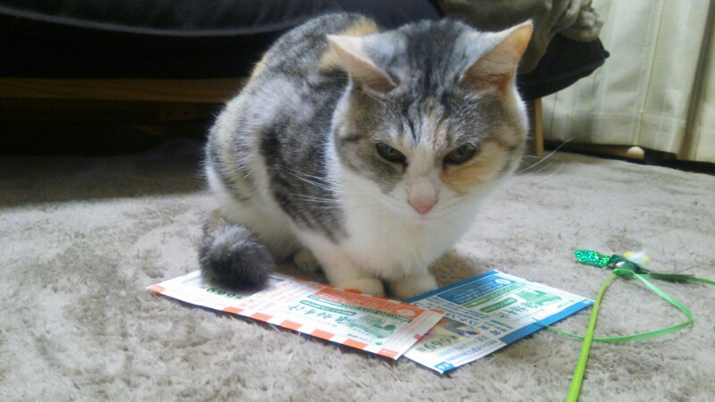 しまみけに招き猫として頑張って!と言ったらこの顔。