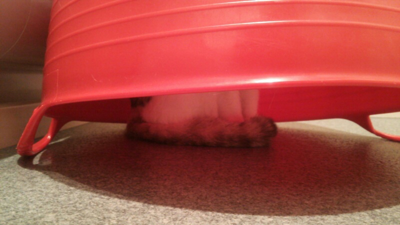 洗濯物入れの籠に収まっていました。