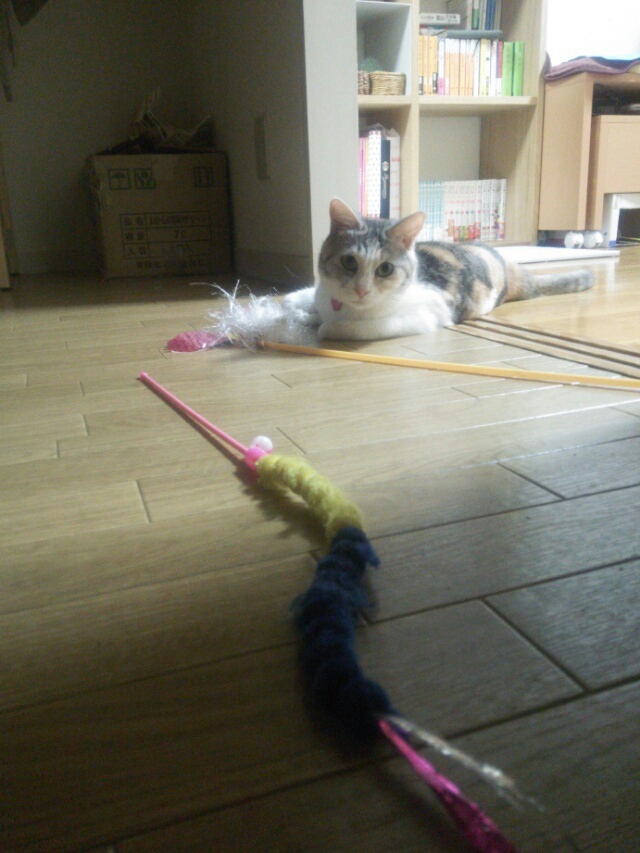 今宵もお風呂上がりにおもちゃを準備しているしまみけです。