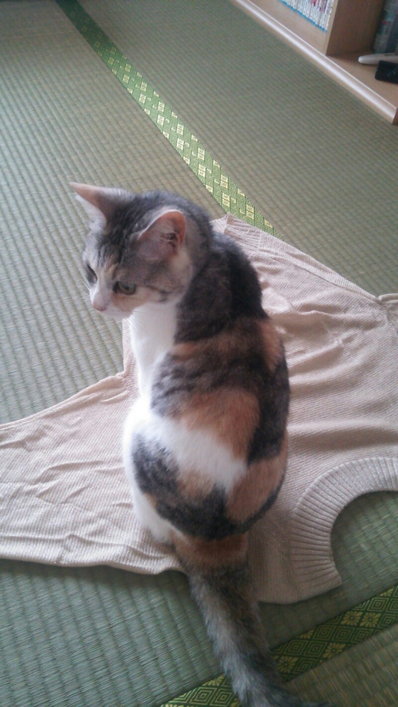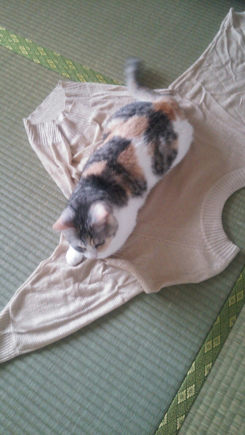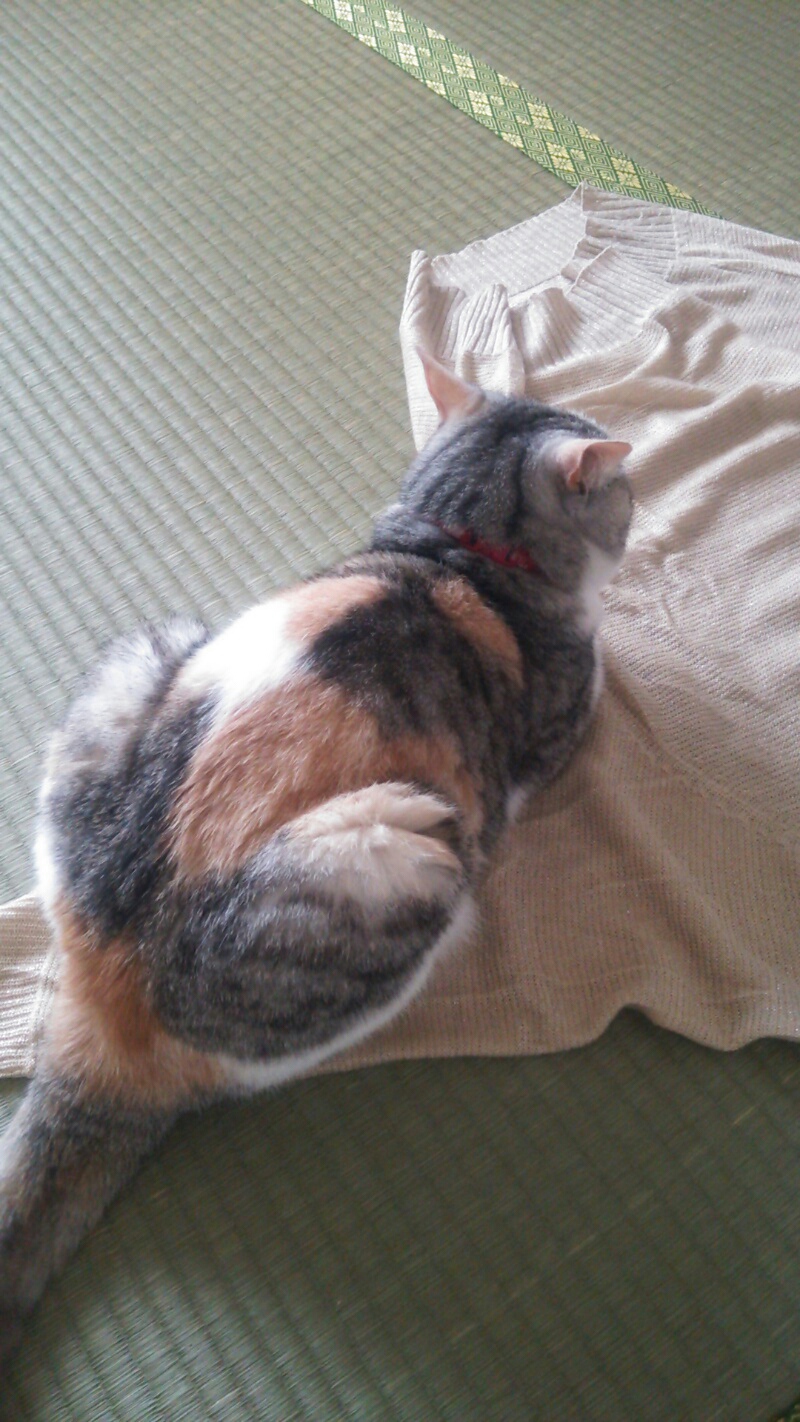 諦めて違う服を着てソファーに座ってたら、今度はこう…。