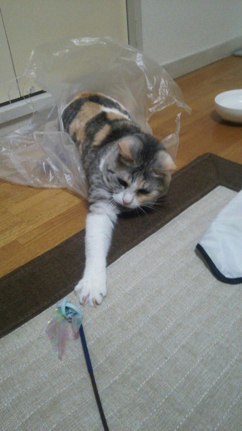 猫パンチを避けるため、距離を置いてたら暇になってしまったようです。