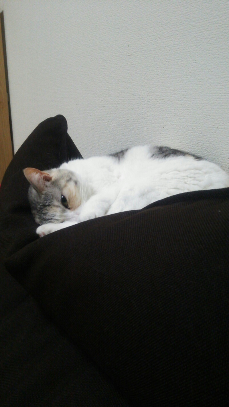 またソファーのヘッドレストで寝るブームがやって来ました。