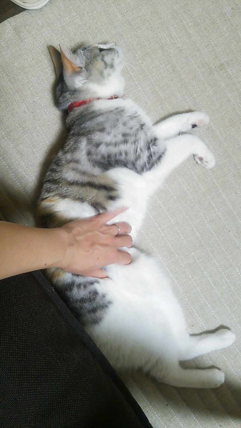 ヨーグルトとマッサージの効果を信じて朝を迎えたところ、無事にお腹スッキリにゃんこになっていました。
