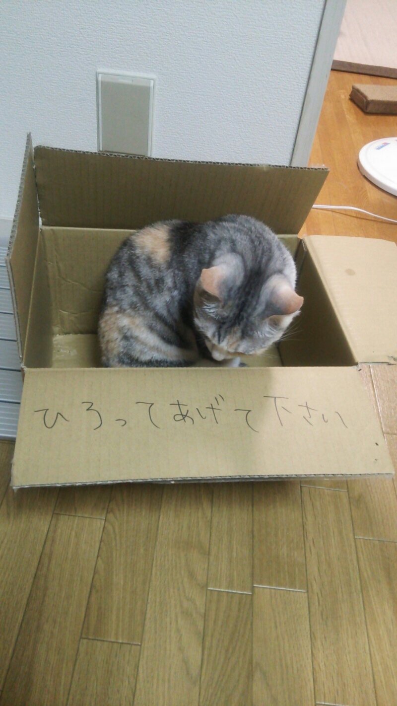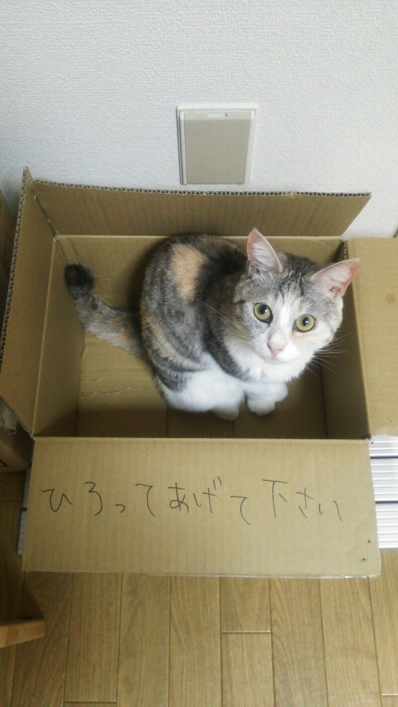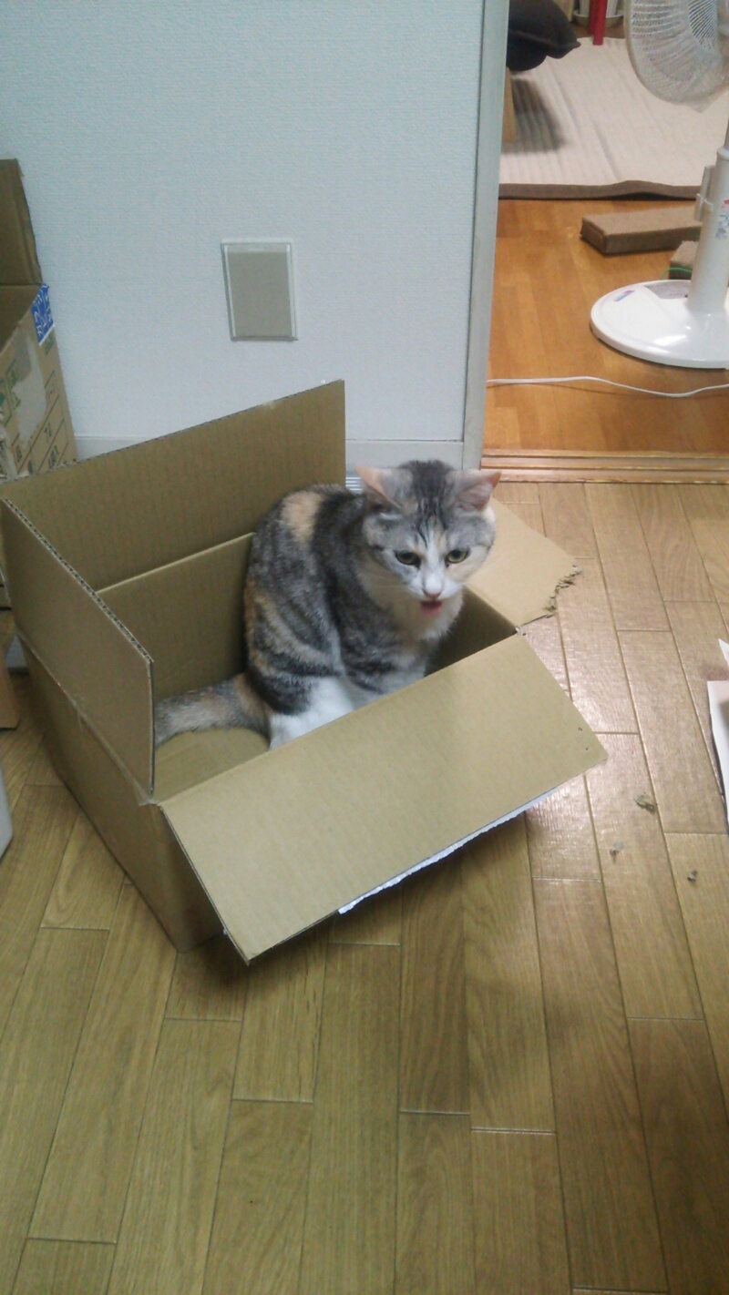 この段ボールはまだたまに入って遊んでいるので、なかなか捨てられません。