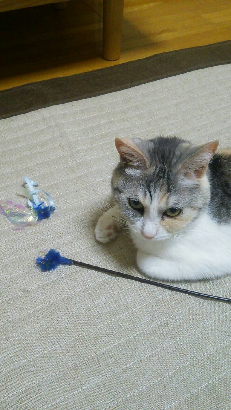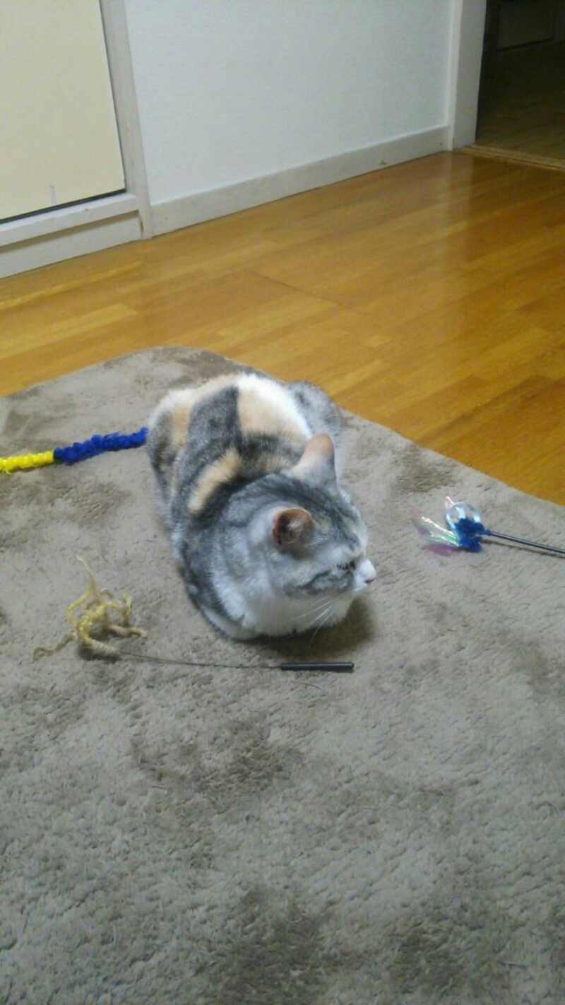 直そうと思っておもちゃを持ち上げたところ、物凄い食いつくしまみけ。