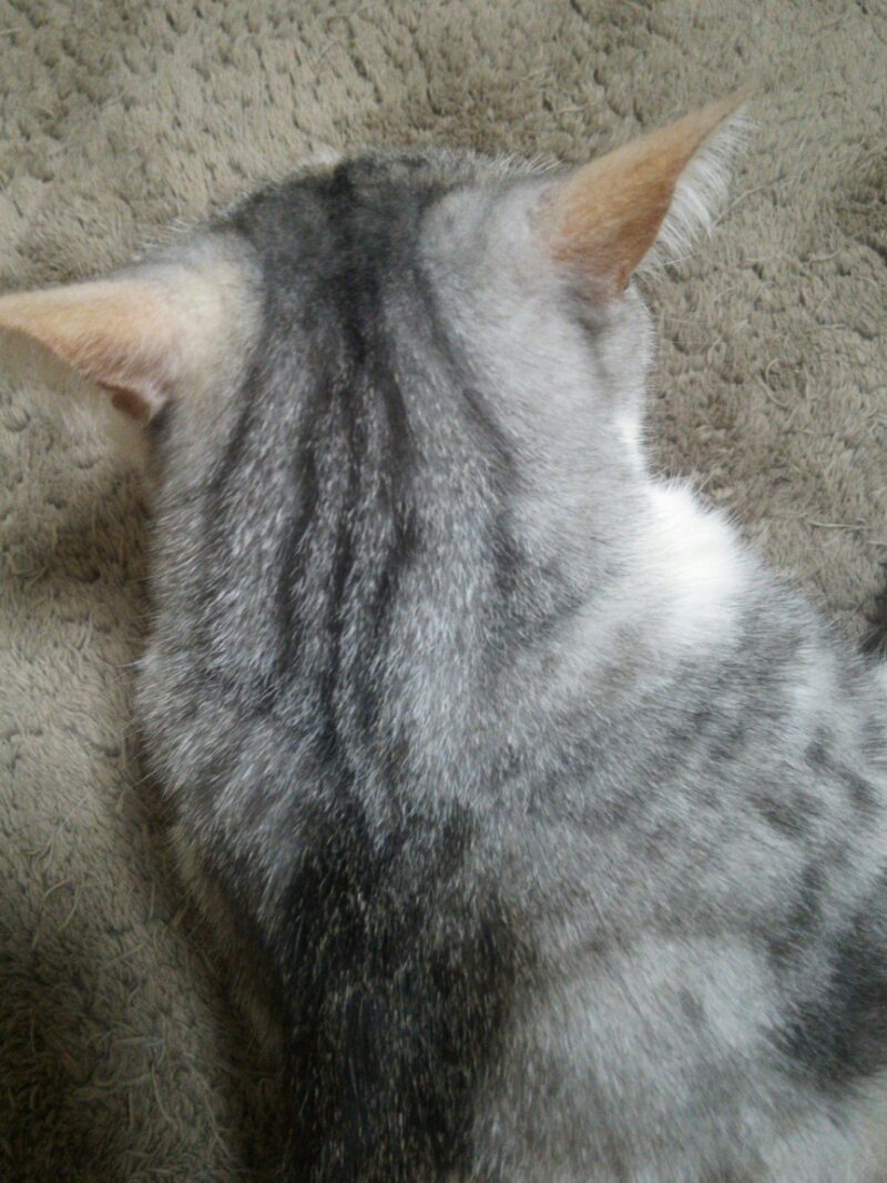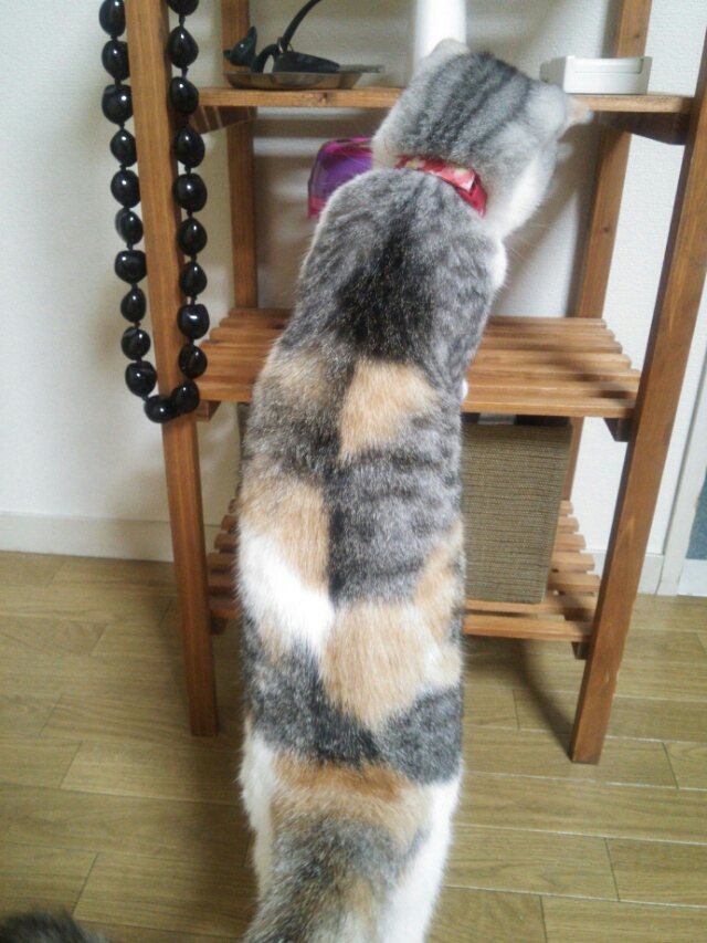 既に30分程換気した後だったので天袋を閉めると、後ろに片手を上げたままぼーぜんとフリーズするしまみけが。
