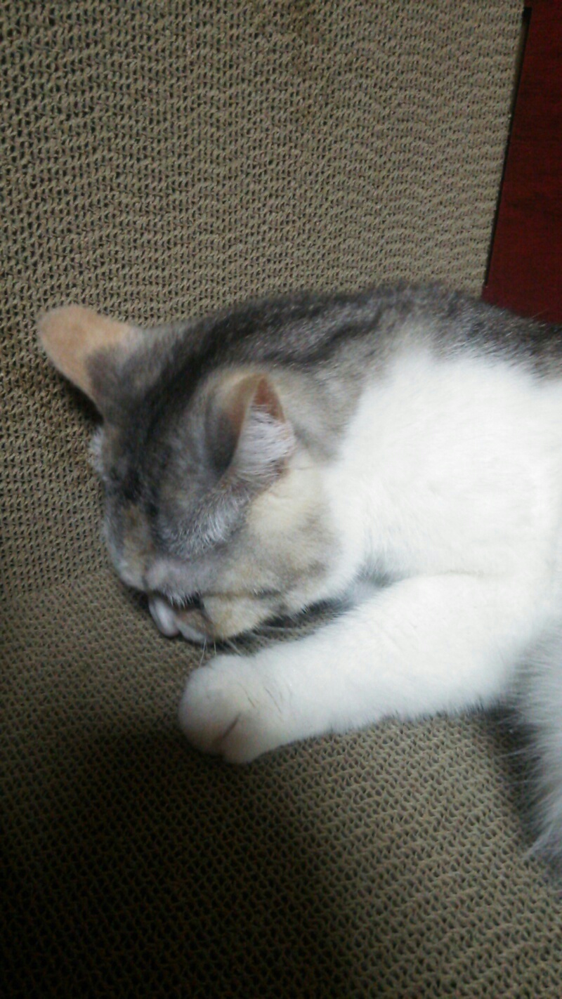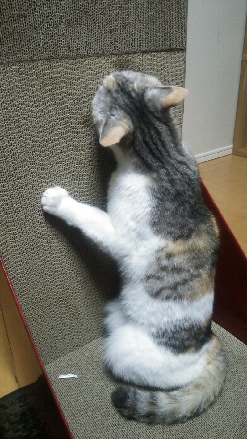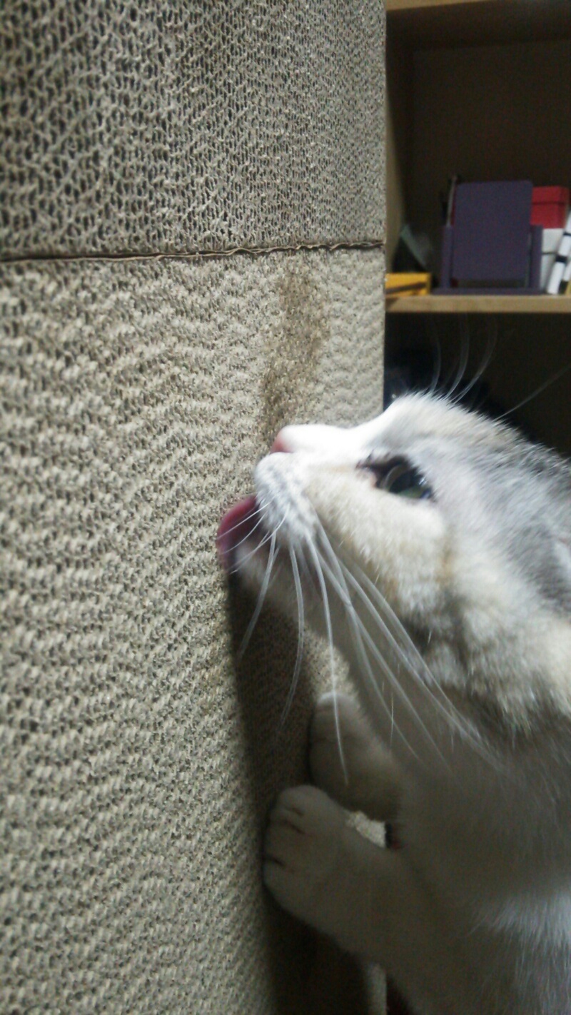 相変わらずガリガリウォールをべろべろするしまみけ。