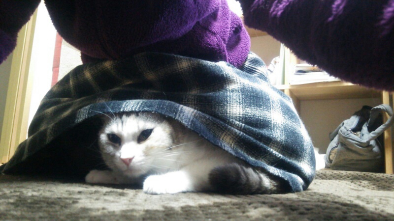 枕元のジェラトーニのぬいぐるみに一発猫パンチをくわえてからベッドに上がり、そのまま布団でゴロゴロ。