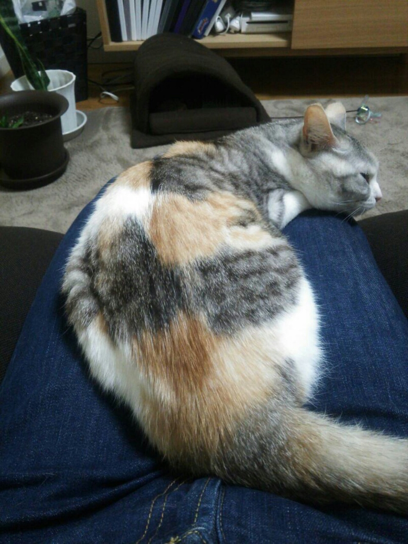 2013年のねこの日に1歳半のしまみけにゃんこがやってきました。 ちょっとどんくさい縞三毛猫との生活です。