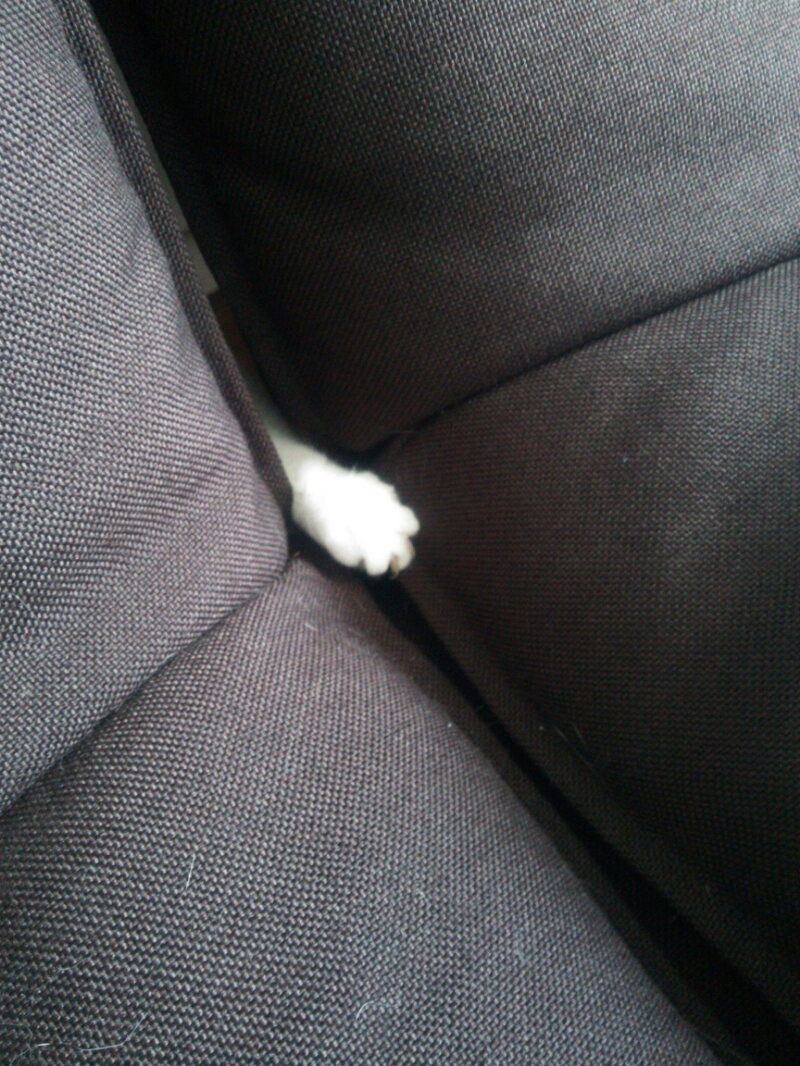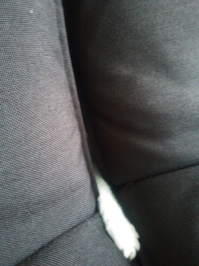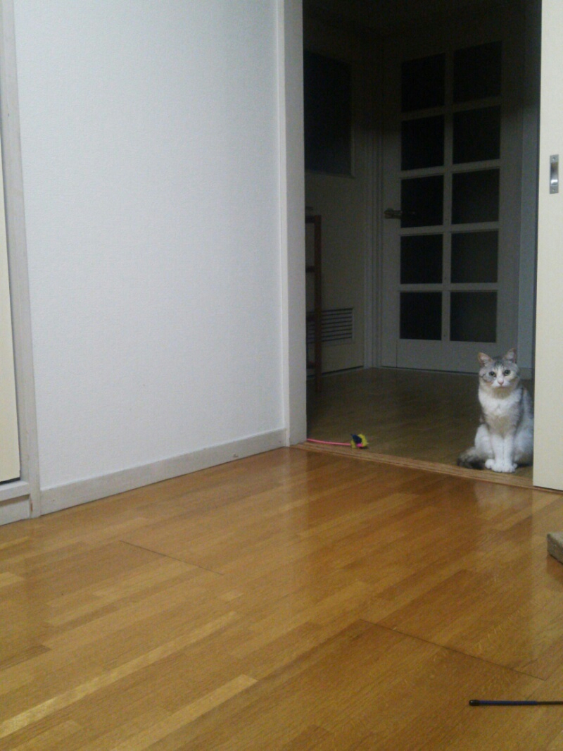 飼い主の食事が終わるのを真後ろで待つしまみけ。