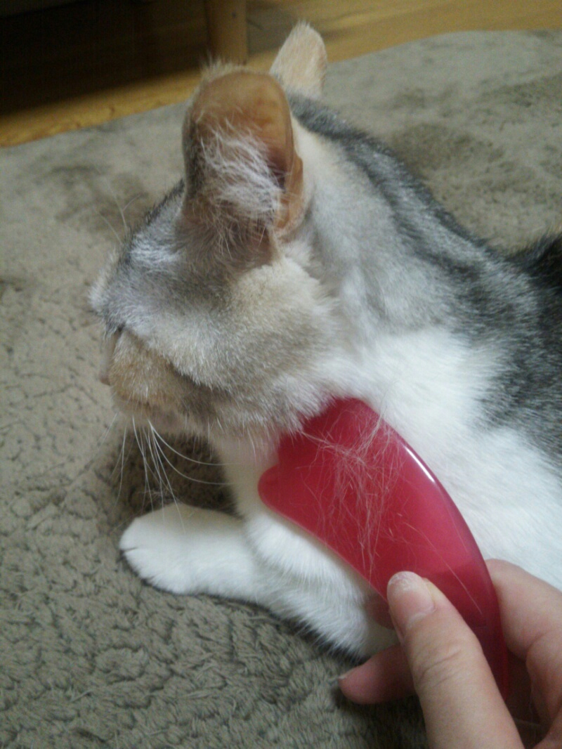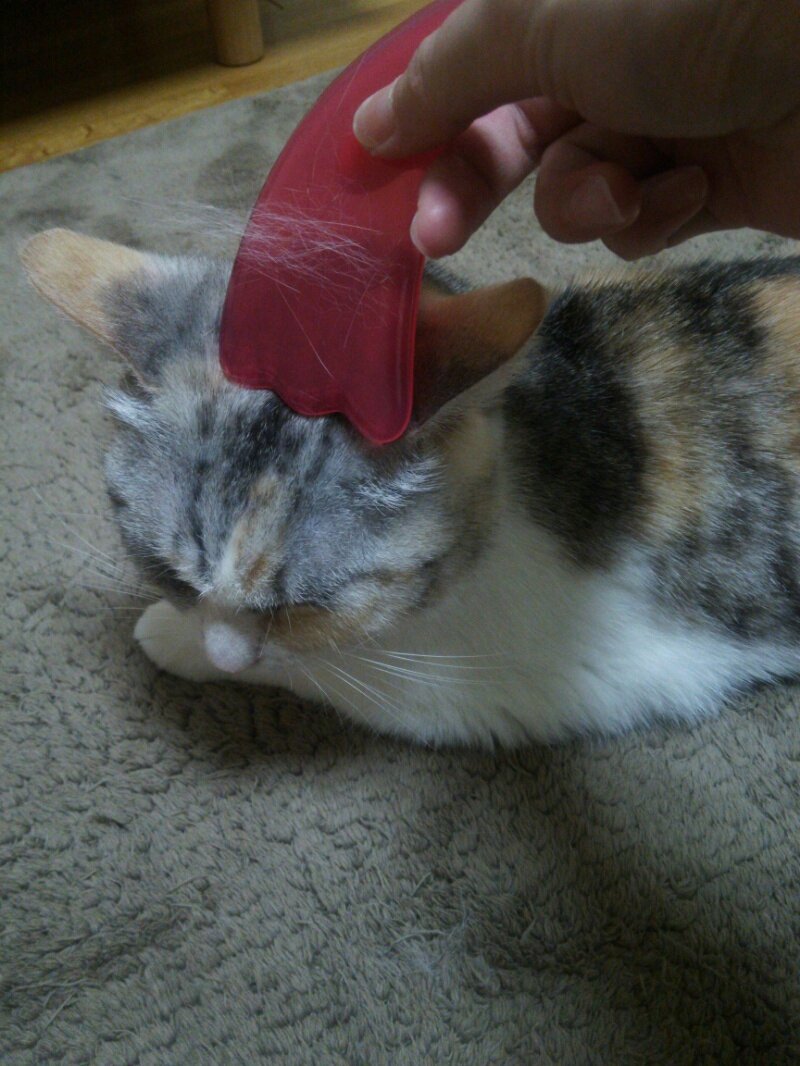 しまみけが興味深げにしていたので、カッサマッサージをしてみました。