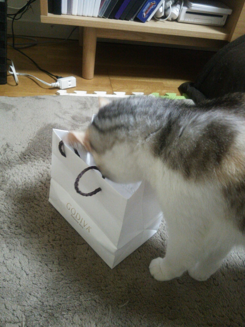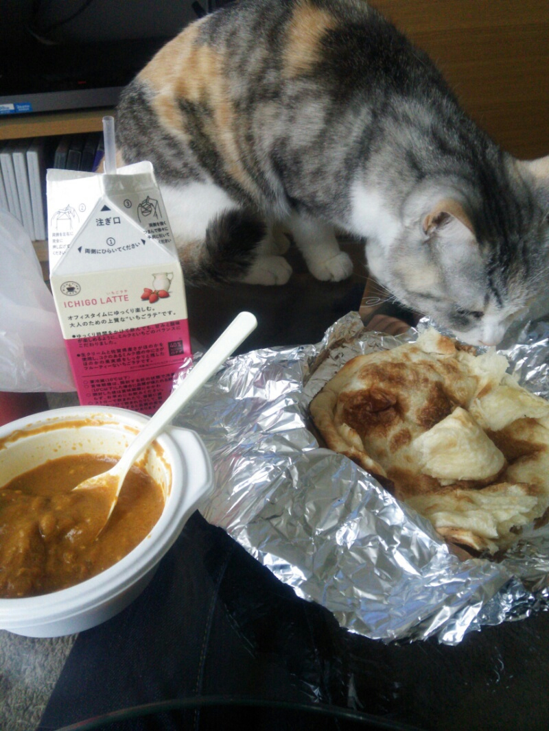 家に着いてからは買ってきたカレーのナンを狙っていました。