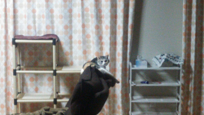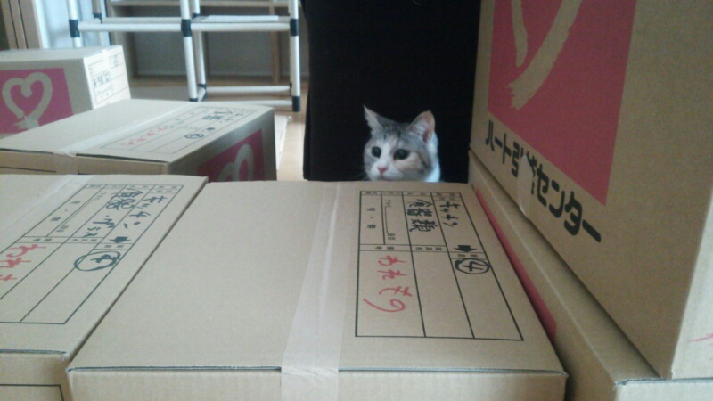 荷ほどき中、主人がお昼ご飯を買いにいっている間にしまみけが行方不明になり、大泣きしながら家の中と外を探し回ると言うハプニングがありましたが、今は無事です。