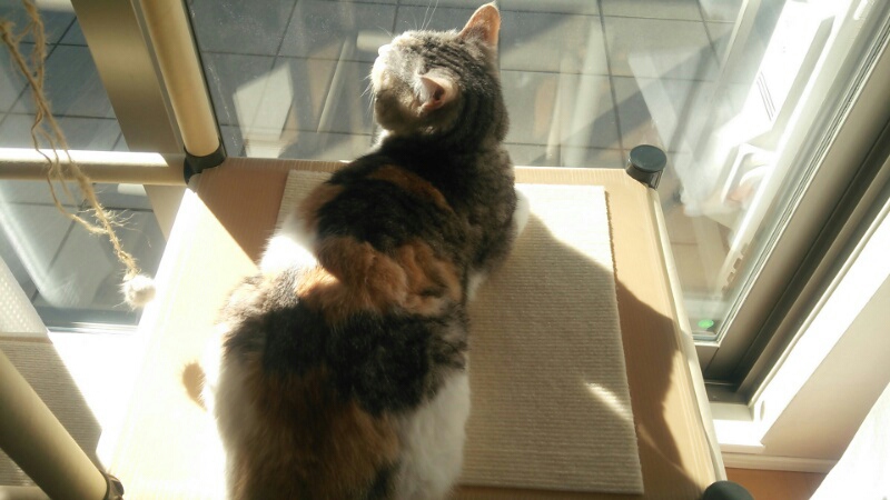 新しい家は日が当たる時間が長いので、しまみけの日向ぼっこに最適です。