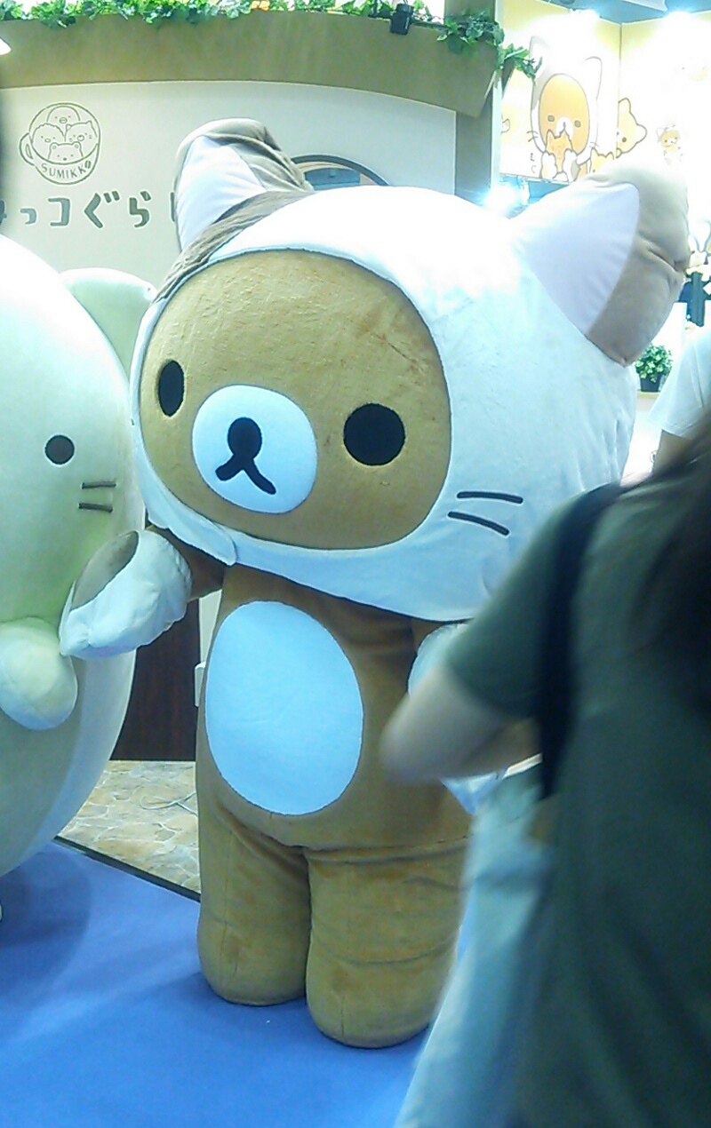 今日、仕事で展示会に行ったら、猫に仮装したリラックマに遭遇しました。