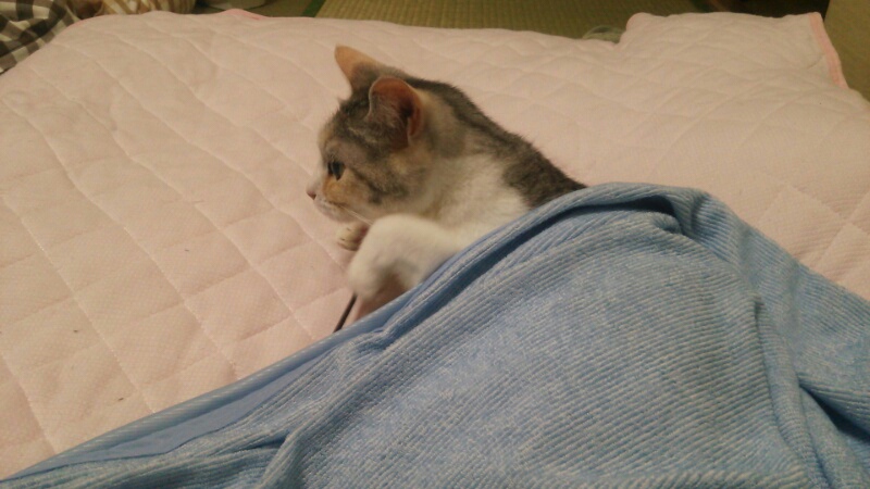 いつもは手を収納することが多いから、なんだかあまり見かけない光景です。