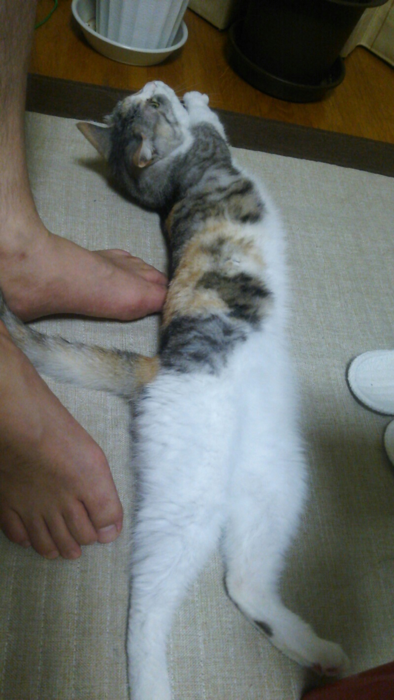 セクシーポーズで毛繕い中のしまみけ。
