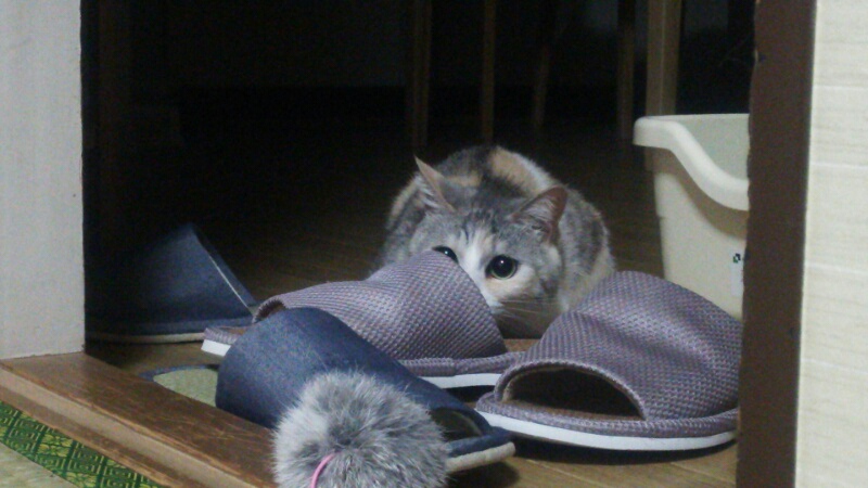 おもちゃを狙うしまみけ。