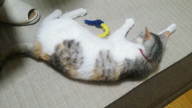 暑くなってきて、そこいらでごろごろするようになったしまみけ。