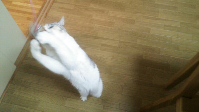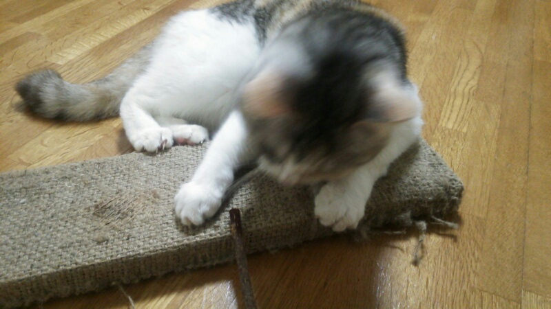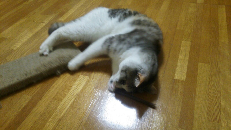 何ヵ月も前に爪研ぎにマタタビを掛けたんですが、今更ながらそれに反応してます。