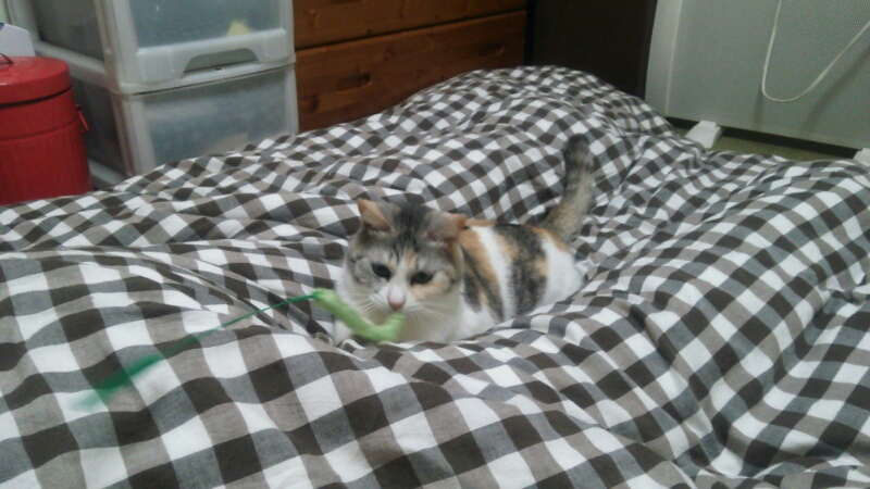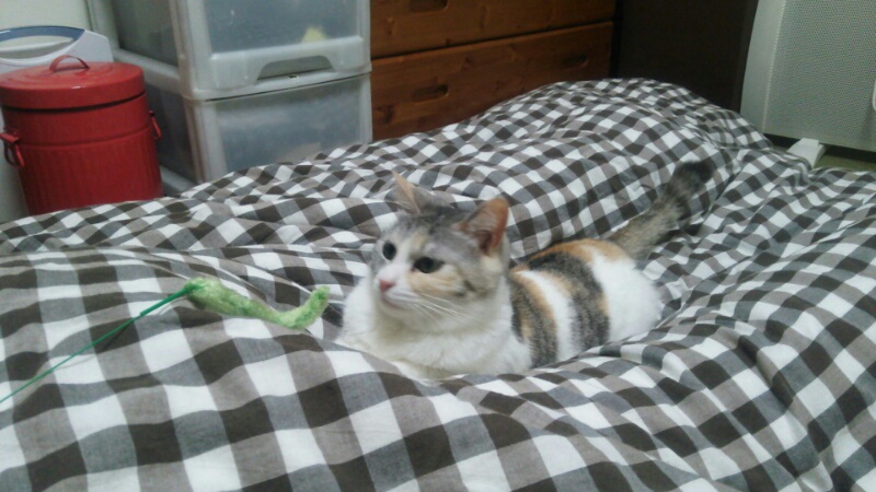 おもちゃの捕り方から猫らしい俊敏さを感じられず、どんくささが出ているような気がします。