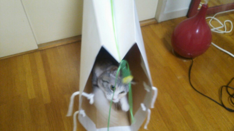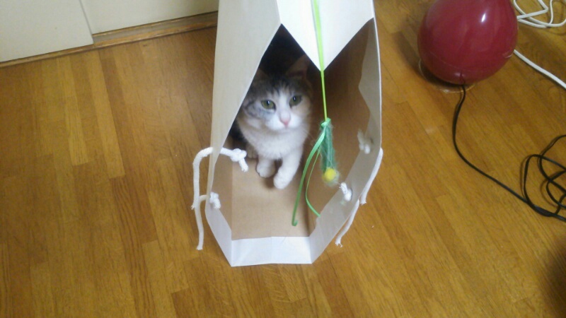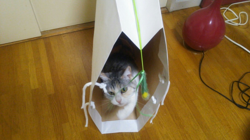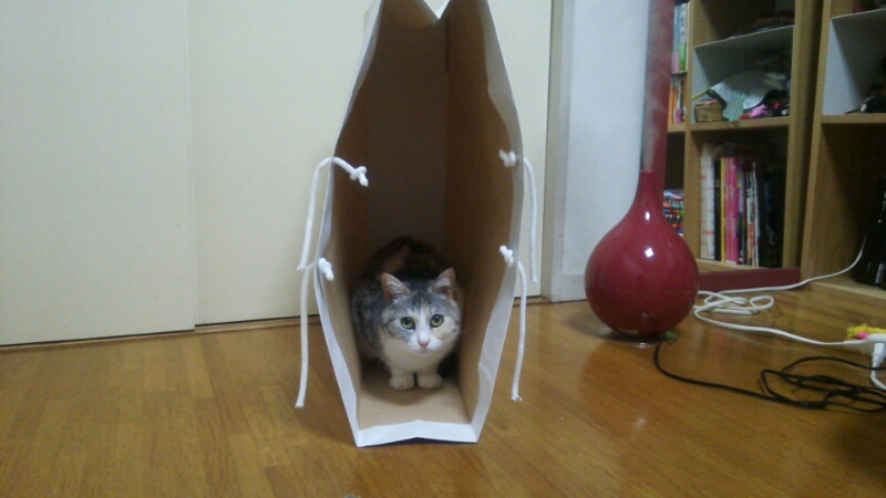 でもこのあとガジガジ箱をかじって散らかしたので、撤収しました。