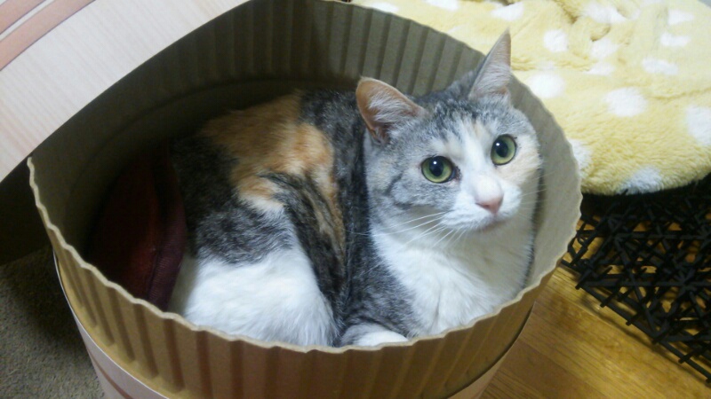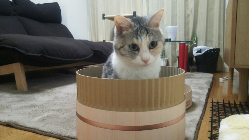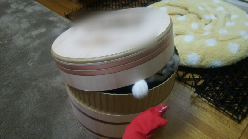 箱があんまり好きじゃない子なんですが、この桶は良く入ります。