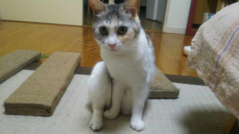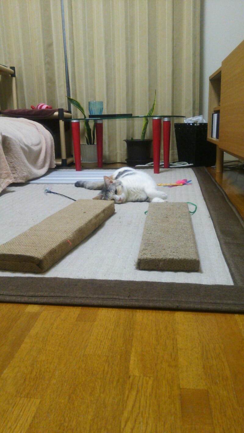 土曜の明け方、しまみけが私に向かってまた爪を出してきたんですがその瞬間をたまたま主人が見ていて、しまみけが爪を立てようとしている場所に主人が手を置いたところ、少しだけ引っ掻いて居なくなりました。